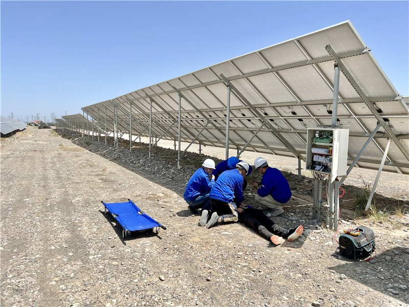 安全生產(chǎn)月期間,公司所屬酒泉光伏電站開展了模擬運維人員在巡檢過程中觸電的應(yīng)急演練,石嘴山光伏電站開展了模擬突發(fā)火情消防應(yīng)急演練,顯著提升了電站防災(zāi)避險和自救互救的能力,筑牢安全生產(chǎn)的防線,確保電站的有序生產(chǎn)。