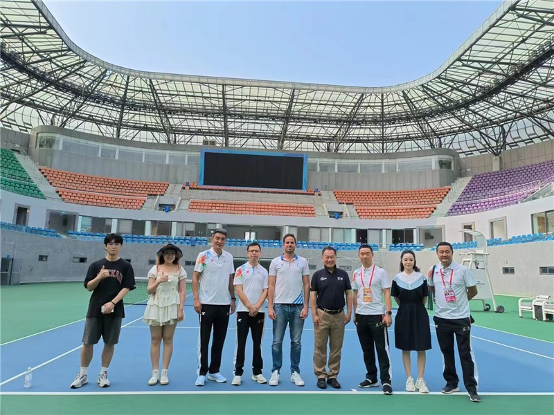 2023年6月27日,國際大體聯(lián)網(wǎng)球技術(shù)委員會主席川廷尚弘、國際大體聯(lián)官員Andrea Uccello 實地考察了川投國網(wǎng)公司網(wǎng)球場館中心賽事籌備工作情況。大運會成都市執(zhí)委會體育競賽部、安全部等相關(guān)處室負(fù)責(zé)人,川投國網(wǎng)公司副總經(jīng)理韋慶,川投網(wǎng)球場館中心競賽組副主任殷劍巍、執(zhí)行副主任費昭祥、競賽服務(wù)副主任劉杰等陪同考察。