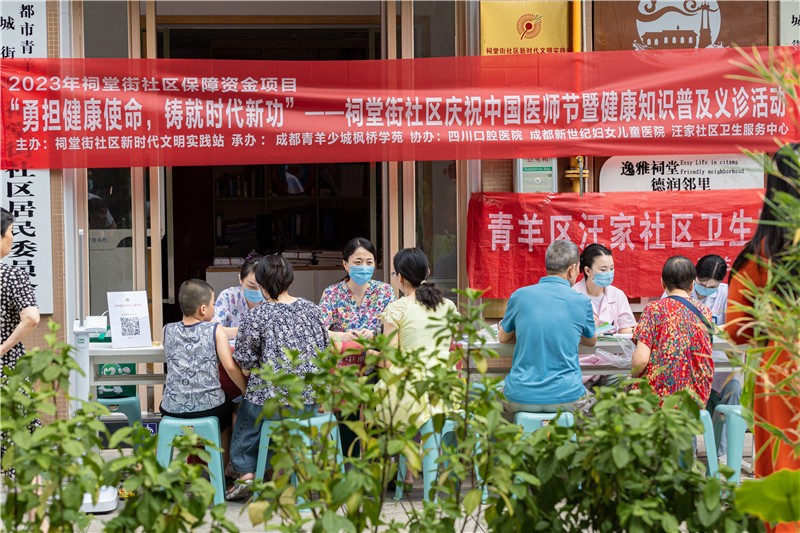 8月19日是第6個“中國醫(yī)師節(jié)”,為深入學(xué)習(xí)貫徹黨的二十大精神,大力弘揚(yáng)醫(yī)務(wù)工作者的崇高職業(yè)精神,同時提高群眾口腔健康意識和預(yù)防疾病的能力。8月18日上午,四川口腔醫(yī)院聯(lián)合成都市青羊區(qū)祠堂街社區(qū)新時代文明實踐站、成都青羊少城楓橋?qū)W苑、汪家社區(qū)衛(wèi)生服務(wù)中心等單位,在祠堂街社區(qū)開展了慶祝中國醫(yī)師節(jié)健康義診活動。