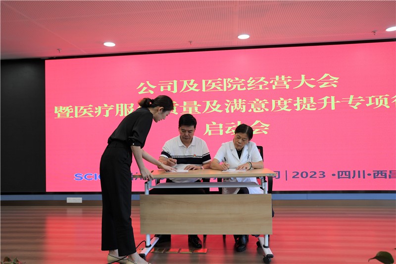 為進(jìn)一步提升患者就醫(yī)滿意度,優(yōu)化服務(wù)流程,提高醫(yī)療質(zhì)量,在醫(yī)療服務(wù)質(zhì)量和患者滿意度雙提升上實(shí)現(xiàn)新突破,2023年8月23日,公司組織召開“經(jīng)營(yíng)大會(huì)暨醫(yī)療服務(wù)質(zhì)量及滿意度提升專項(xiàng)行動(dòng)啟動(dòng)會(huì)”,公司及醫(yī)院領(lǐng)導(dǎo)、除值班外的全體員工參會(huì)。