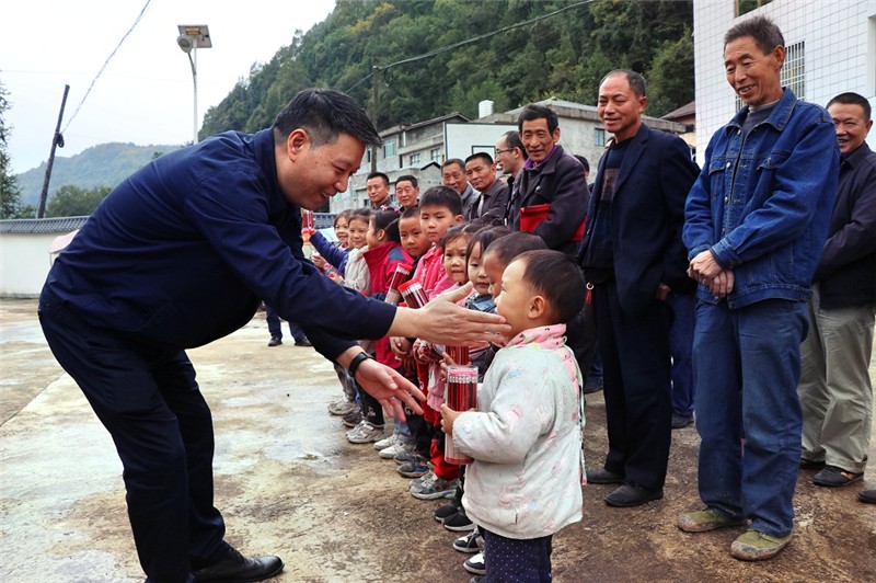 在操場上,達(dá)州氣電黨總支委員李勇一行和新恩嶺村村支書茍猛一道,向村民和孩子們發(fā)放生活物品,鼓勵村民們發(fā)展鄉(xiāng)村振興事業(yè),勉勵孩子們好好讀書天天向上。