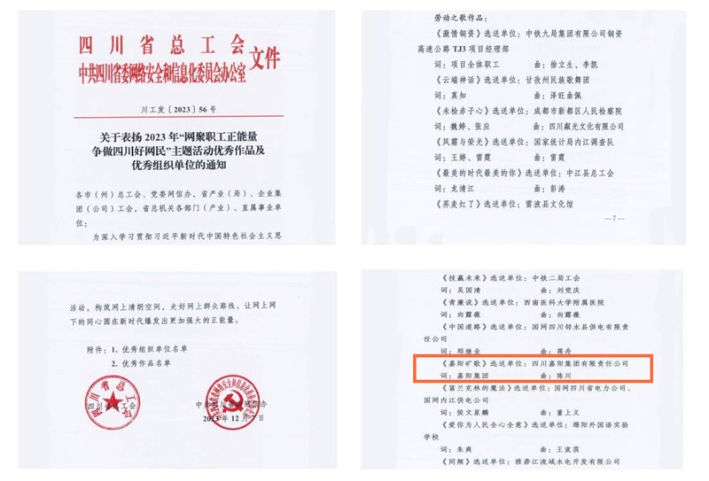 近日,四川省總工會(huì)下發(fā)《關(guān)于表揚(yáng)2023年“網(wǎng)聚職工正能量爭做四川好網(wǎng)民”主題活動(dòng)優(yōu)秀作品及優(yōu)秀組織單位的通知》,由嘉陽集團(tuán)報(bào)送的視頻《嘉陽礦歌》獲勞動(dòng)之歌作品獎(jiǎng)。