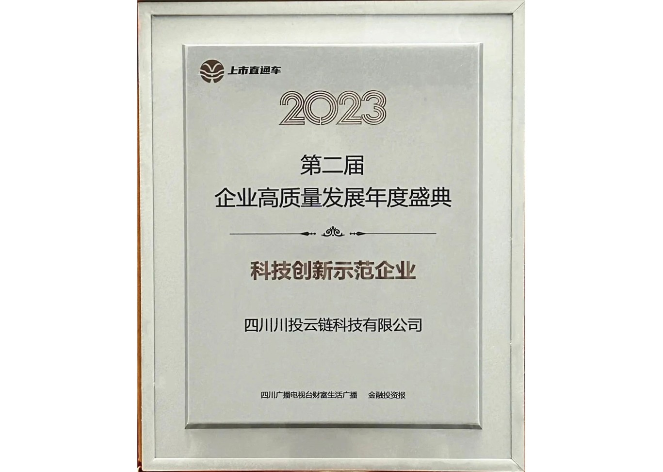 2024年1月13日,“上市直通車——2023第二屆企業(yè)高質量發(fā)展年度盛典大會”在四川廣播電視臺舉辦,川投信產(chǎn)所屬川投云鏈憑借在數(shù)字供應鏈金融領域的科技創(chuàng)新成果及賦能優(yōu)勢,榮獲“科技創(chuàng)新示范企業(yè)”榮譽稱號。
