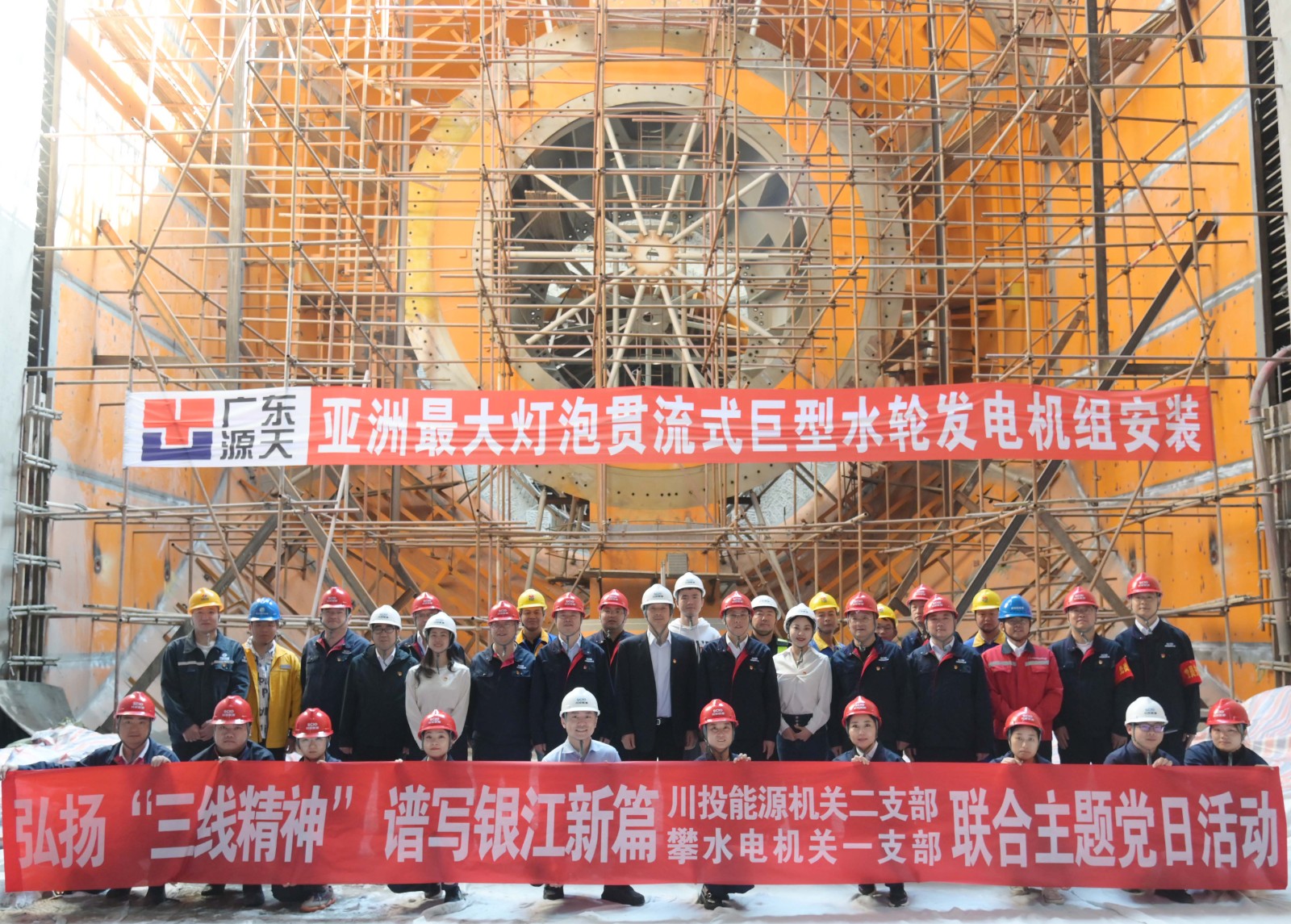 在銀江水電站亞洲最大燈泡貫流式巨型水輪發(fā)電機(jī)組安裝現(xiàn)場(chǎng),川投能源機(jī)關(guān)二支部書(shū)記李睿講授了工地微黨課《承諾》,與大家一起重溫銀江水電站建設(shè)過(guò)程中的感人故事。活動(dòng)中,徐孝剛用通俗易懂的語(yǔ)言,為現(xiàn)場(chǎng)同志介紹了銀江水電站的建設(shè)特點(diǎn)、施工情況和下一步工程建設(shè)計(jì)劃,并號(hào)召全體黨員和團(tuán)員青年要圍繞“保一爭(zhēng)二”提前發(fā)電重要目標(biāo),團(tuán)結(jié)一心、勇挑重?fù)?dān)、善作善成。
