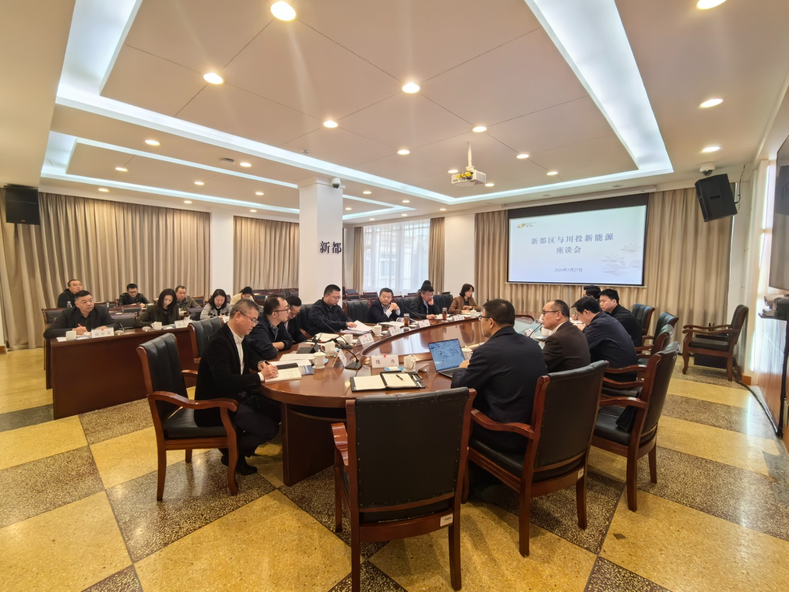 新都區(qū)高新區(qū)管委會、經(jīng)信局、投促局、規(guī)自局、新都區(qū)供電公司、新投集團(tuán),川投新能源公司相關(guān)人員參加座談。