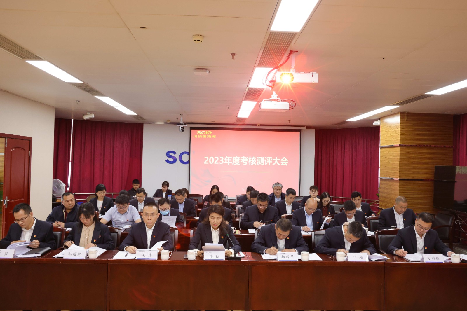4月7日下午,田灣河公司召開領導班子2023年度述職測評及選人用人“一報告兩評議”工作會,會議由公司黨委書記、董事長李紅主持,領導班子成員、中層管理人員及員工代表共計39人參會。