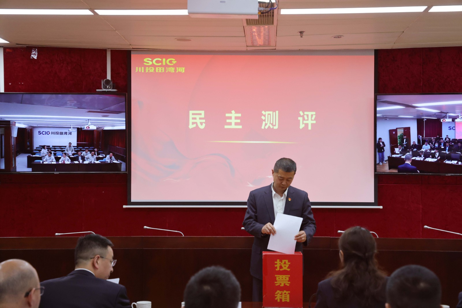 會上,李紅代表公司領導班子述職并就2023年度干部選拔任用工作作報告,其他班子成員依次進行個人述職,從政治素質、黨建工作、推動高質量發(fā)展、巡視巡察整改及以案促改、作風建設、合規(guī)管理等方面認真總結,談成績、說亮點、講經(jīng)驗,查不足、找差距、挖根源,并結合自身分管業(yè)務,列出下步工作計劃及舉措。全體參評人員認真聆聽,并以高度負責的態(tài)度,客觀公正、實事求是地對領導班子及成員、干部選拔任用工作進行民主測評。
