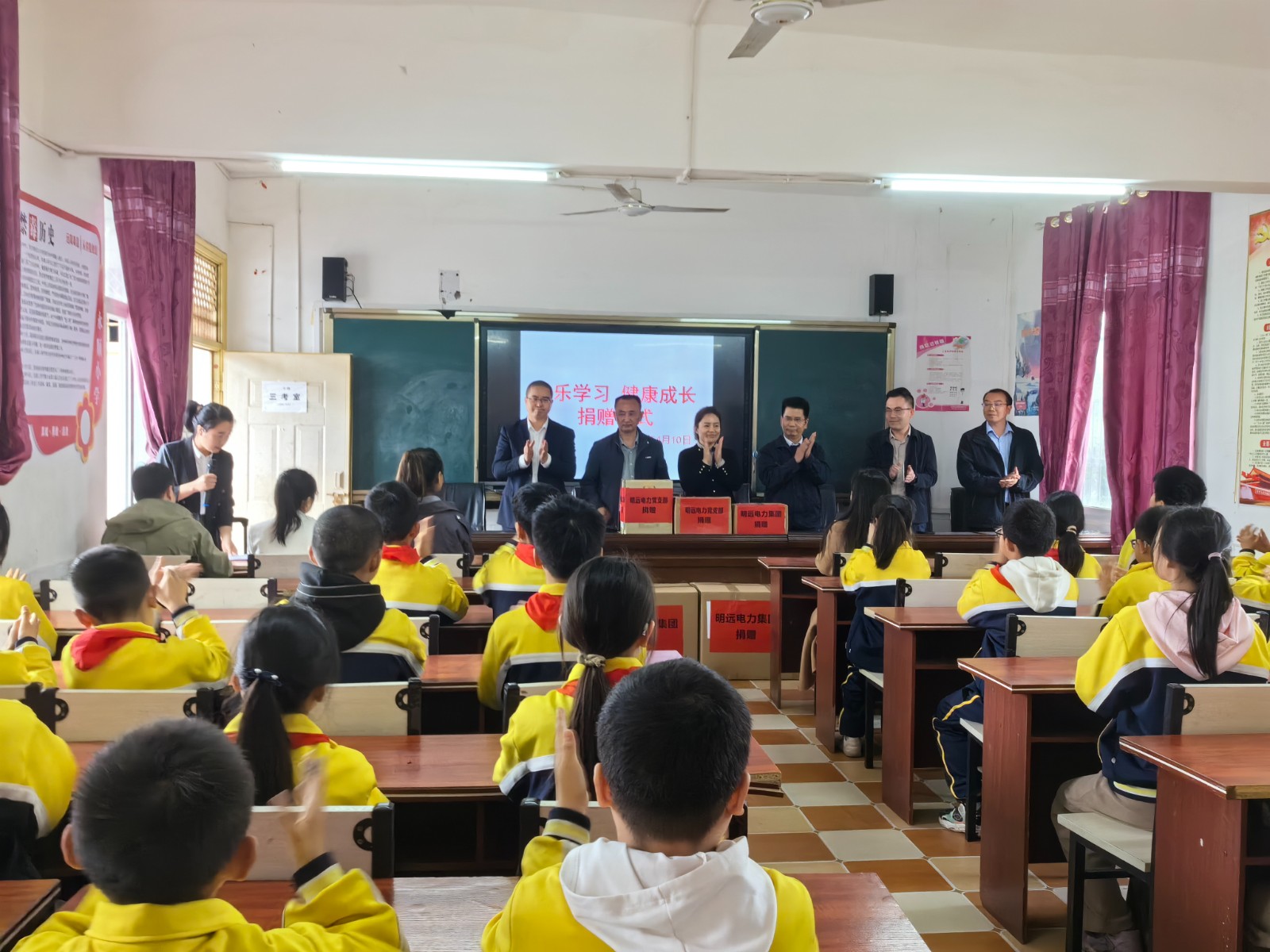 4月10日,川投集團(tuán)資陽燃?xì)怆娬拘陆üこ?20千伏送出工程項(xiàng)目建設(shè)、施工單位一行赴安岳縣永順小學(xué)開展“快樂學(xué)習(xí) 健康成長”愛心捐贈(zèng)活動(dòng)。資陽氣電副總經(jīng)理嚴(yán)天元,明遠(yuǎn)電力集團(tuán)黨總支部書記、董事長黃心寧,安岳縣永順鎮(zhèn)鎮(zhèn)長李永升、永順小學(xué)校長蔣志輝、副校長唐琴及師生代表參加捐贈(zèng)活動(dòng)。