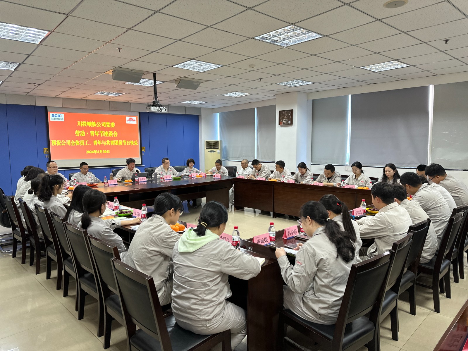 川投峨鐵公司相關(guān)班子成員、各黨支部負(fù)責(zé)人、勞模標(biāo)兵代表、團(tuán)員和青年代表共37人參加座談。