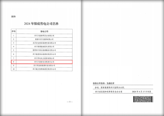 近日,省發(fā)改委、省能源局發(fā)布了《關(guān)于明確2024年保底售電公司的通知》,川投售電再次被評(píng)選為四川電力市場(chǎng)2024年保底售電公司。川投售電連續(xù)兩年獲此殊榮,是電力主管部門及各市場(chǎng)主體對(duì)川投售電經(jīng)營(yíng)能力、市場(chǎng)信譽(yù)、員工實(shí)力等各方面的認(rèn)可,更是川投售電全體干部職工腳踏實(shí)地、眾志成城、全力以赴提升公司綜合實(shí)力的具體體現(xiàn)。