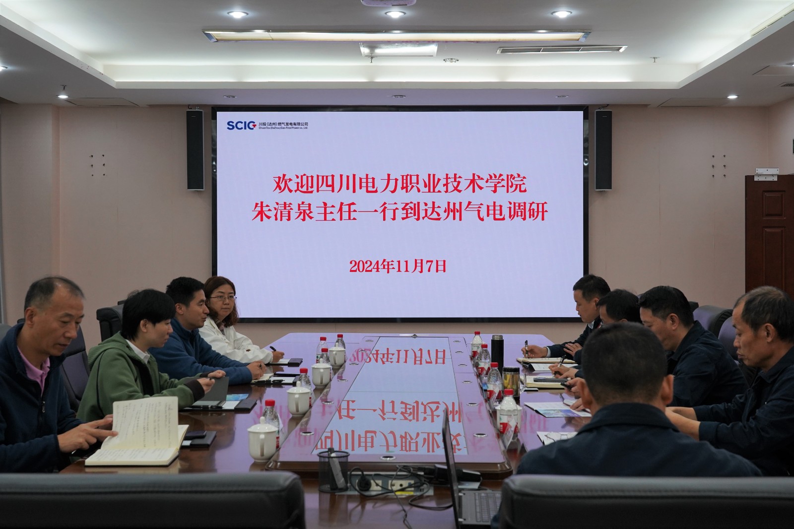 11月7日,四川電力職業(yè)技術(shù)學(xué)院招生就業(yè)部主任朱清泉率隊到達州氣電調(diào)研并座談。達州氣電黨總支書記、總經(jīng)理蔡宏,黨總支委員、職工董事、工會主席李勇陪同。