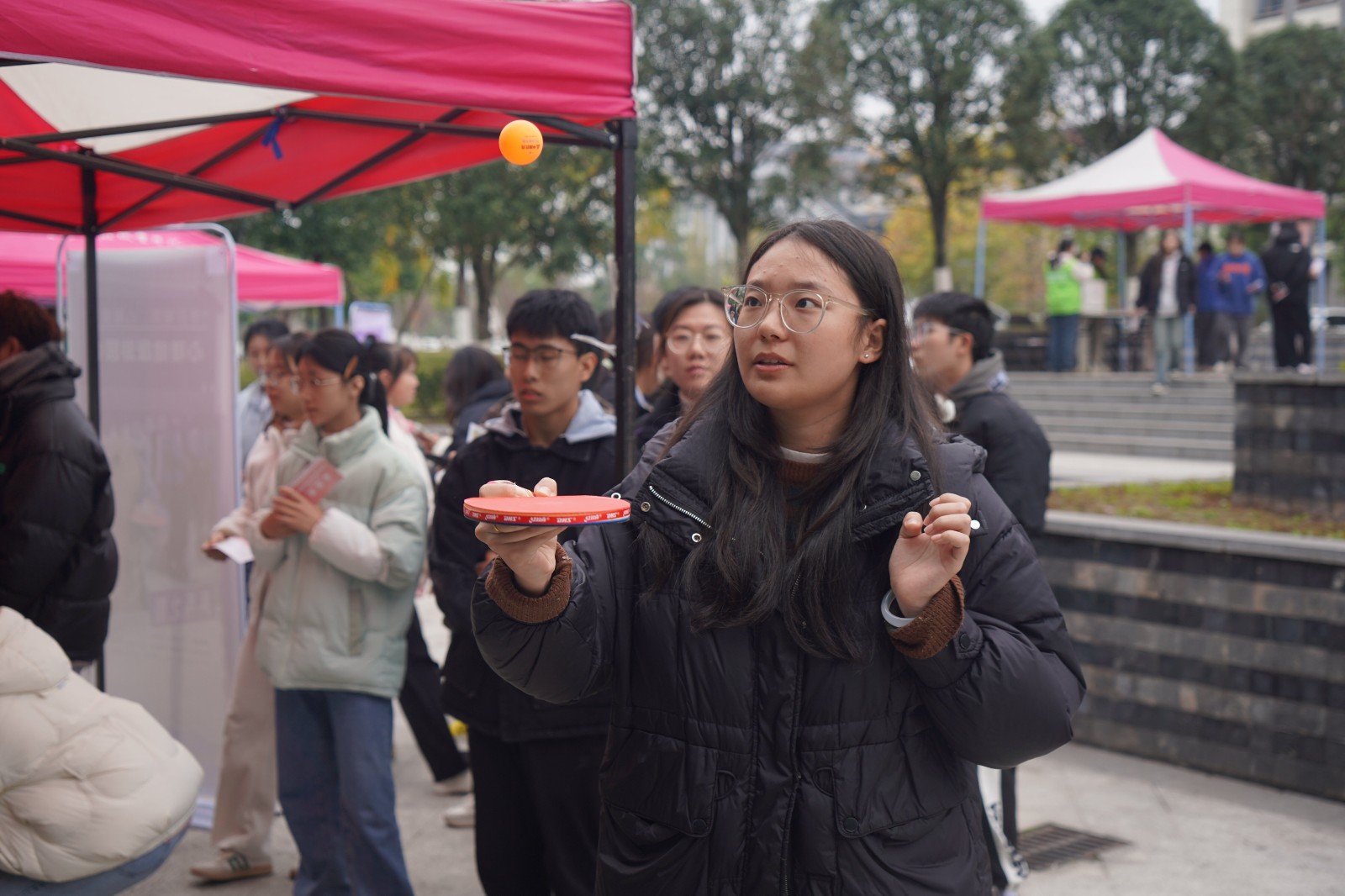 本次游園會(huì)共包含“袋鼠跳”、“蒙眼作畫”、“彈瓶蓋”、“乒乓之顛”和“精準(zhǔn)投球”等5項(xiàng)活動(dòng),分為團(tuán)隊(duì)和個(gè)人賽項(xiàng)?;顒?dòng)中,同學(xué)們通過知識(shí)問答、運(yùn)動(dòng)比拼、團(tuán)隊(duì)競(jìng)技、動(dòng)手操作等環(huán)節(jié),獲得身心上的放松和愉悅。“相信自己”“考試加油”“順利畢業(yè)一起去旅行!”……在“情緒小紙條”收集環(huán)節(jié),同學(xué)們紛紛寫下了近期的奮斗小目標(biāo),為有煩惱的同學(xué)大方分享自己的快樂妙招。