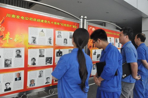 為紀(jì)念中國(guó)共產(chǎn)黨建黨90周年,川南發(fā)電公司專門(mén)訂購(gòu)《中國(guó)共產(chǎn)黨歷史和成就展》、《永遠(yuǎn)的豐碑》等資料圖片,在公司舉辦“紅色圖片”宣傳展覽,生動(dòng)再現(xiàn)中國(guó)共產(chǎn)黨領(lǐng)導(dǎo)中國(guó)人民進(jìn)行革命和建設(shè)的奮斗歷程,展示在黨的領(lǐng)導(dǎo)下中國(guó)革命和社會(huì)主義現(xiàn)代化建設(shè)的輝煌成就,進(jìn)一步增強(qiáng)廣大黨員、職工建設(shè)公司、發(fā)展公司的信心和決心。(姜波)