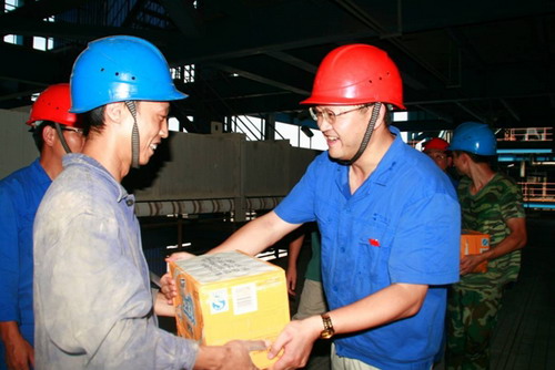 8月的瀘州,驕陽似火,酷暑難當(dāng)。8月17日下午13:30,受公司黨委書記唐得旗、總經(jīng)理李勝章的委托,川南發(fā)電公司紀(jì)委書記、工會(huì)主席黃松(右)率黨群工作部、綜合事務(wù)部一行10余人冒著烈日到#1機(jī)組B修現(xiàn)場、燃煤質(zhì)檢現(xiàn)場等,向奮戰(zhàn)在現(xiàn)場的職工和堅(jiān)守運(yùn)行工作崗位的運(yùn)行人員送去冰紅茶等防暑降溫用品,帶去公司的關(guān)心和慰問,送上了夏天的一絲清涼。(吳健)