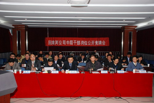 11月11日,田灣河公司中層干部崗位公開競聘大會在電站現場208會議室召開,公司黨委書記、總經理孫志祥,黨委副書記、紀委書記、工會主席劉鳳鳴,總工程師唐劍虹,副總經理、電廠廠長盧建奎,副總會計師楊利出席會議。競聘考評組成員、職工代表和其他生產管理人員共50余人參加了會議,會議由劉鳳鳴主持。