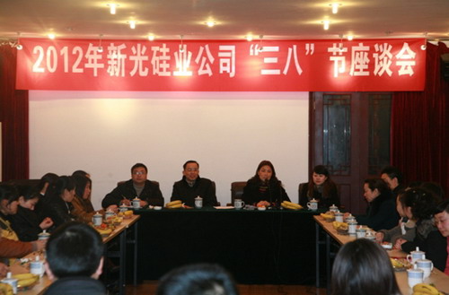 2012年3月8日,新光硅業(yè)公司慶祝“三八節(jié)”座談會在樂山金鷹山莊舉行,會議由公司紀(jì)委書記、工會主席余嘉樂同志主持。會上,余書記首先代表公司黨委和公司總經(jīng)理陳長江向長期堅持在崗位上積極工作、銳意進(jìn)取,為公司發(fā)展做出貢獻(xiàn),的女職工表示崇高的敬意與節(jié)日的祝福。隨后,董事會秘書、公司總經(jīng)濟(jì)師李紅同志宣讀了2011年度公司先進(jìn)女工的表彰決定及表彰人員名單,并向受到表彰的女職工頒發(fā)榮譽(yù)證書。