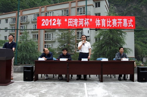 5月22日上午,“2012年‘田灣河杯’體育比賽開幕式”的大幅會標(biāo)懸掛在草科營地籃球場正中央,印有川投集團(tuán)徽記的彩旗飄揚(yáng)在球場四周。公司黨委書記、總經(jīng)理孫志祥,黨委副書記、工會主席劉鳳鳴,總工程師唐劍虹,副總經(jīng)理、電廠廠長盧建奎,副總會計(jì)師楊利出席了當(dāng)天的開幕式,開幕式由劉鳳鳴主持。在雄壯的運(yùn)動員進(jìn)行曲中,參加本次比賽的六支賽隊(duì)在導(dǎo)引員的引導(dǎo)下闊步進(jìn)入會場。