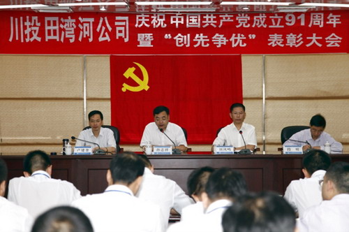 7月1日,田灣河公司在電站現(xiàn)場208會議召開慶祝中國共產(chǎn)黨成立91周年暨“創(chuàng)先爭優(yōu)”表彰大會,公司黨委書記、總經(jīng)理孫志祥,黨委副書記、紀(jì)委書記劉鳳鳴,紀(jì)委委員、副總經(jīng)理、電廠廠長盧建奎,黨委委員、總經(jīng)理助理、行政管理部主任段明及公司全體黨員、入黨積極分子、群眾代表參加了會議。會議由劉鳳鳴主持。