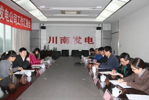 在行政樓四樓會議室,川南發(fā)電公司總經理李勝章對龐處長一行的到來表示熱烈的歡迎,并介紹了公司的基本情況。隨后,川南發(fā)電公司副總經理謝偉平向檢查組匯報了公司2011年和2012年上半年脫硫電價執(zhí)行、財務成本、生產經營等情況,反映了公司發(fā)電形勢嚴峻、機組負荷率低、融資壓力較大等實際困難,建議提高燃用高硫煤火電企業(yè)的脫硫電價、盡快落實水火替代電量補貼、提高火電機組發(fā)電負荷率、增加電煤“豐存枯用”補貼額度、完善電量跨省跨區(qū)交易制度,從而幫助川南發(fā)電公司乃至四川火電企業(yè)走出生存困境。總經理李勝章、常務副總經理李萬富就公司煤源結構、機組利用小時數(shù)、煤耗、節(jié)能排序等問題作了補充。