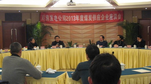 為總結(jié)2012年煤炭采購工作,分析2013年煤炭走勢,加強與供煤商的溝通協(xié)作, 2月27日,川南發(fā)電公司組織召開了煤炭供應(yīng)商座談會。會議由副總經(jīng)理謝偉平主持,黨委書記唐得旗到會,鑫福礦業(yè)公司等10多家供煤企業(yè)代表出席了會議。