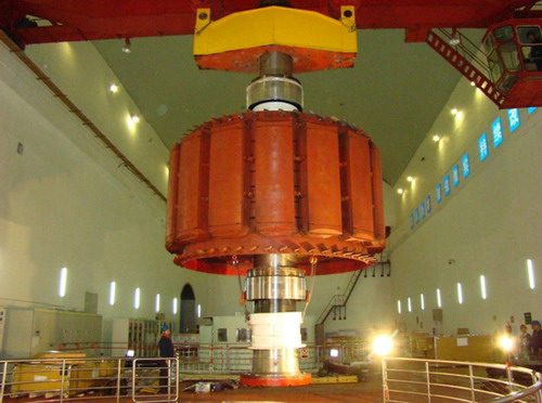 4月26日11時(shí)00分,隨著田灣河流域仁宗海水庫(kù)電站2號(hào)機(jī)組發(fā)電機(jī)轉(zhuǎn)子緩緩上升、平移至安裝間轉(zhuǎn)子專用支墩上時(shí),宣告了仁宗海水庫(kù)電站2號(hào)機(jī)組A級(jí)檢修重要部件的起吊工作順利完成。