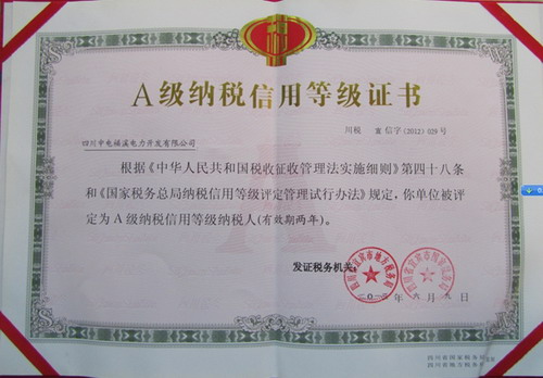 6月27日,中電福溪公司從眾多參評企業(yè)中脫穎而出,再次榮獲宜賓市國家稅務(wù)局和地方稅務(wù)局聯(lián)合頒發(fā)的《A級納稅信用等級證書》,得到了政府和社會公眾的廣泛認同,樹立了良好的納稅形象。