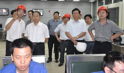 8月13日,瀘州市委書記蔣輔義、市委副書記曹建國、常務(wù)副市長曹俊杰、市委常委、政法委書記陳文、副市長曹勇率市發(fā)展改革委、市經(jīng)濟和信息化委、市財政局、市國土資源局、市住建局等單位主要負責(zé)人,到川南發(fā)電公司調(diào)研,了解關(guān)心公司生產(chǎn)經(jīng)營、企業(yè)發(fā)展等情況。圖為在2×600兆瓦級組集控室,瀘州市委書記蔣輔義(左二)、市委副書記曹建國(右二)聽公司領(lǐng)導(dǎo)匯報機組發(fā)電運行情況。