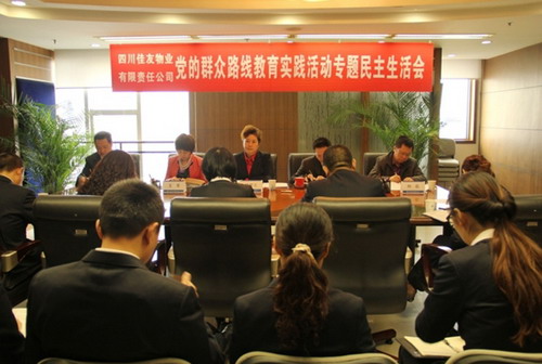 根據(jù)中央、省委關(guān)于開(kāi)展黨的群眾路線教育實(shí)踐活動(dòng)的總體部署,按照集團(tuán)公司黨的群眾路線教育實(shí)踐活動(dòng)領(lǐng)導(dǎo)小組及其辦公室的具體要求,佳友物業(yè)公司于2013年11月19日召開(kāi)了黨的群眾路線教育實(shí)踐活動(dòng)專題民主生活會(huì)。會(huì)議圍繞保持黨的先進(jìn)性和純潔性,按照“照鏡子、正衣冠、洗洗澡、治治病”的總要求,以“反對(duì)四風(fēng)、服務(wù)群眾”為重點(diǎn),緊密結(jié)合佳友物業(yè)公司實(shí)際、領(lǐng)導(dǎo)干部的思想和作風(fēng)建設(shè)實(shí)際情況,深入查擺存在的突出問(wèn)題,認(rèn)真解決形式主義、官僚主義、享樂(lè)主義和奢靡主義等“四風(fēng)”問(wèn)題,開(kāi)展批評(píng)與自我批評(píng),促使黨員領(lǐng)導(dǎo)干部牢固樹(shù)立宗旨意識(shí)、馬克思主義群眾觀點(diǎn),切實(shí)改進(jìn)工作作風(fēng)。