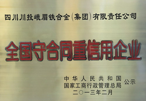 經(jīng)過(guò)工商行政管理部門層層審定,國(guó)家工商行政管理總局認(rèn)定川投峨鐵公司為 “全國(guó)守合同重信用企業(yè)”。并向公司授予了“全國(guó)守合同重信用企業(yè)”牌匾。