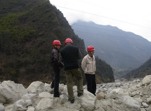 3月12日清晨張昊從成都出發(fā),經(jīng)碗崗翻山越嶺到達(dá)電站現(xiàn)場后,與公司副總經(jīng)理盧建奎一道直奔施工現(xiàn)場,查看了施工進(jìn)度和人員、設(shè)備、機械配置情況,向施工和監(jiān)理單位負(fù)責(zé)人詢問了現(xiàn)場施工情況。當(dāng)晚,張昊與草科鄉(xiāng)黨政領(lǐng)導(dǎo)就村民阻工等問題進(jìn)行了協(xié)商會談,指出災(zāi)后重建工作是公司年度工作的重中之重,懇請鄉(xiāng)政府加大協(xié)調(diào)力度,支持公司加快推進(jìn)災(zāi)后恢復(fù)重建工作。