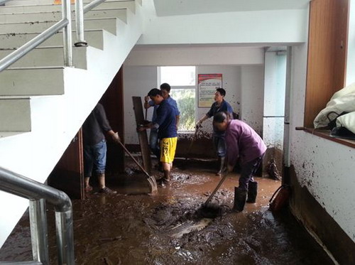 與此同時,受張昊委托,總經(jīng)理助理熊宇在公司營地召集技術(shù)與安全部、發(fā)電部、設(shè)備檢修與維護(hù)部、水工與水情部等相關(guān)部門和物業(yè)管理單位召開了“7.09山洪泥石流”抗洪搶險(xiǎn)第一次會議。進(jìn)一步明確了抗洪搶險(xiǎn)期間的組織領(lǐng)導(dǎo)、協(xié)調(diào)機(jī)制、人員集中地點(diǎn)、搶險(xiǎn)碰頭會議制度等內(nèi)容。重點(diǎn)強(qiáng)調(diào)了工作紀(jì)律,要求搶險(xiǎn)期間務(wù)必注意人身安全,防止次生災(zāi)害的發(fā)生,在等待外部救援的同時盡量做到不等不靠,充分利用現(xiàn)有的人力、物力進(jìn)行自救。隨后,一臺挖機(jī)、一臺裝載機(jī)進(jìn)入營地開始清理工作,公司合作單位中鐵十六局、子豪公司、興達(dá)公司先后趕赴現(xiàn)場開展搶險(xiǎn)救援。