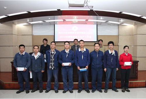 李紅通報了公司“2014年度生產(chǎn)技術(shù)比武”的競賽情況,并由公司領(lǐng)導(dǎo)為獲獎人員現(xiàn)場頒獎。