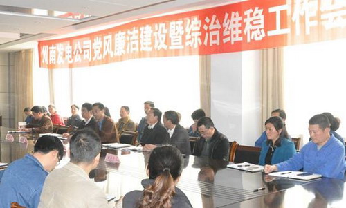 3月31日,川南發(fā)電公司召開2016年度黨風(fēng)廉潔建設(shè)暨綜治維穩(wěn)工作會,總結(jié)2015年公司黨風(fēng)廉潔建設(shè)暨綜治維穩(wěn)工作,安排部署2016年工作任務(wù),并簽訂了“雙廉”責(zé)任書。公司領(lǐng)導(dǎo)、中層干部、要害崗位職工、各部門黨風(fēng)廉潔建設(shè)監(jiān)督員共計70余人參加了會議。