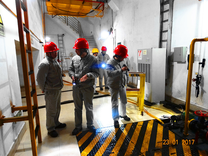 按照檢查表要求的檢查內(nèi)容,盧建奎一行深入流域梯級水電站生產(chǎn)現(xiàn)場,重點檢查了各部門今冬明春安全生產(chǎn)工作執(zhí)行情況,生產(chǎn)和辦公區(qū)域防火、防盜、防凍、防滑及用電(油)安全、道路交通、消防安保等工作執(zhí)行情況,輸電線路防冰凍雨雪災(zāi)害措施落實情況,三站及營地食堂食品衛(wèi)生安全管理情況。針對仁宗海、金窩水電站球閥層地漏排水不暢等問題,盧建奎要求安生、檢修、水工等部門采取加裝滲漏集水裝置定期抽排方式,消除積水影響人員安全通行和設(shè)備安全運行隱患。