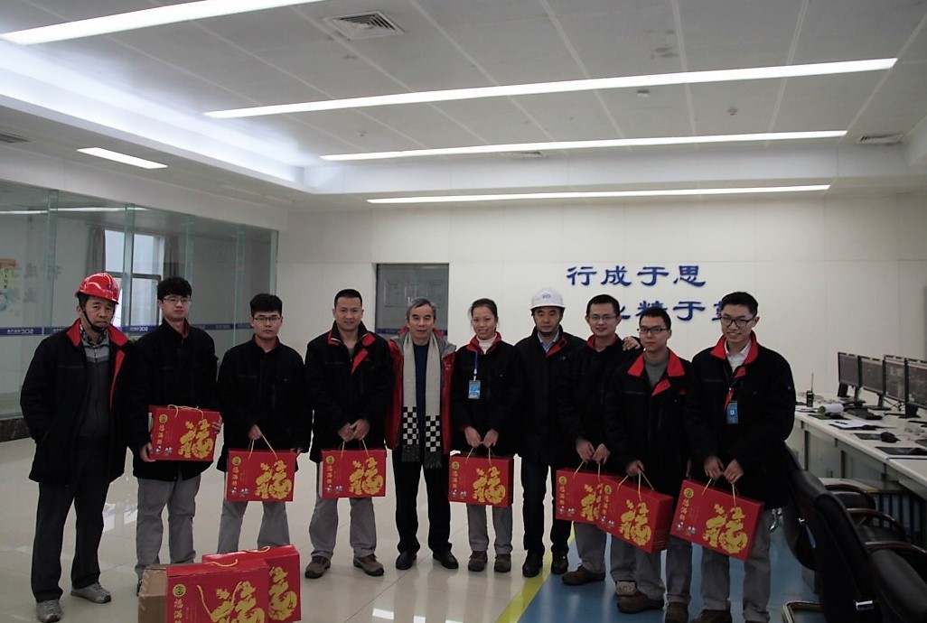 2017年1月27日,農歷大年除夕,正是闔家團聚、歡度新春之際,公司董事長、黨委書記、總經理張華端同志放棄與家人團聚的機會,親臨公司生產現(xiàn)場看望慰問節(jié)日期間堅守崗位的一線員工,向他們送上新春的祝福和節(jié)日的慰問。