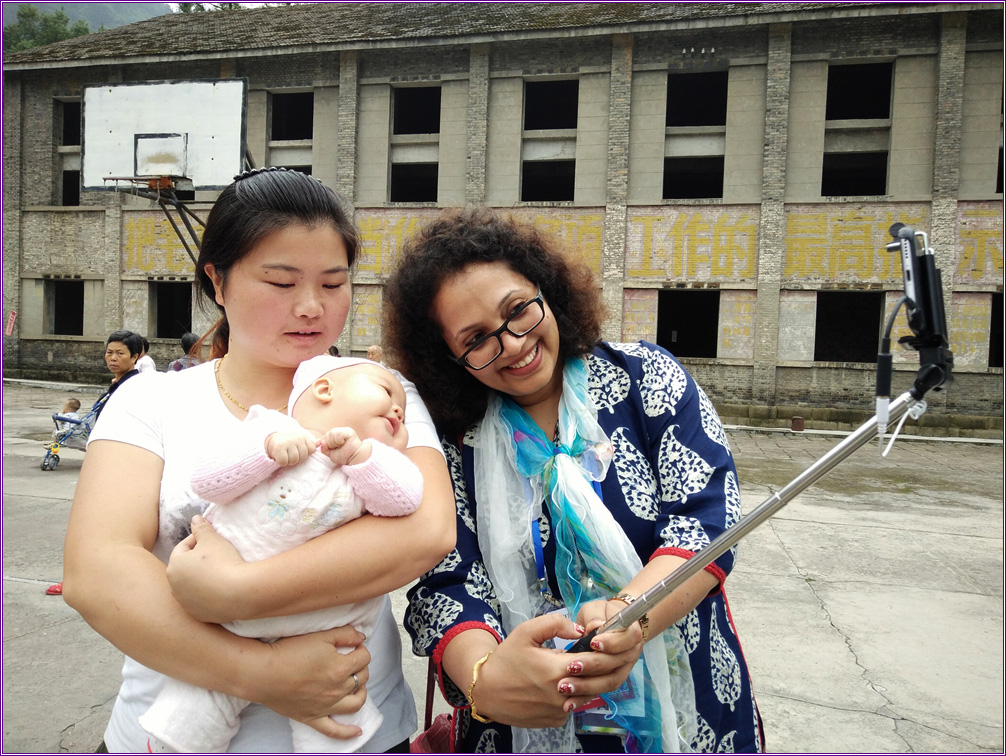 “我特別喜歡這里的花海,來(lái)之前就一直打聽這個(gè)季節(jié)有什么花,結(jié)果非常幸運(yùn),看到很大一片,我會(huì)把這里當(dāng)成樂山之行中非常美妙的回憶?!眮?lái)自印度的Rajashree邊走邊看,不斷向志愿者了解當(dāng)?shù)貧v史。