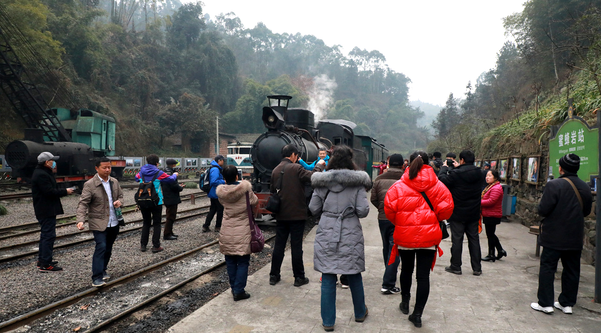 1月15日,嘉陽·桫欏湖旅游景區(qū)迎來了一批特殊的游客。晴朗的天氣,洋溢的笑容,一口陜西風(fēng)味普通話,樂山旅游西北營銷中心首發(fā)團(tuán)初遇嘉陽小火車。
