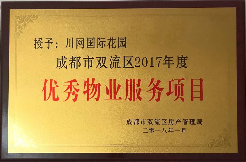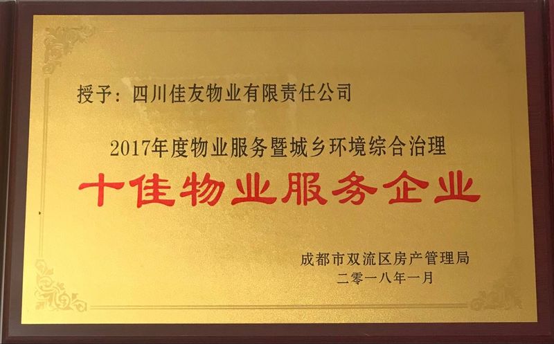 2018年1月24日,雙流區(qū)房管局召開“2017年物業(yè)管理工作總結(jié)會”,會議對2017年度物業(yè)服務(wù)暨城鄉(xiāng)環(huán)境綜合治理十佳物業(yè)服務(wù)企業(yè)、優(yōu)秀物業(yè)服務(wù)項目、優(yōu)秀物業(yè)服務(wù)項目經(jīng)理等評定情況進行了通報,參與評定的共有205個商品住宅物業(yè)服務(wù)小區(qū),被評定為十佳物業(yè)服務(wù)企業(yè)的僅10家,四川佳友物業(yè)有限責(zé)任公司榮獲“2017年度十佳物業(yè)服務(wù)企業(yè)”、川網(wǎng)國際花園項目獲得“2017年度優(yōu)秀物業(yè)服務(wù)項目”、項目副經(jīng)理陳文利獲得“2017年度優(yōu)秀物業(yè)服務(wù)項目經(jīng)理”。報成都市房管局記加信用分10分以茲鼓勵。