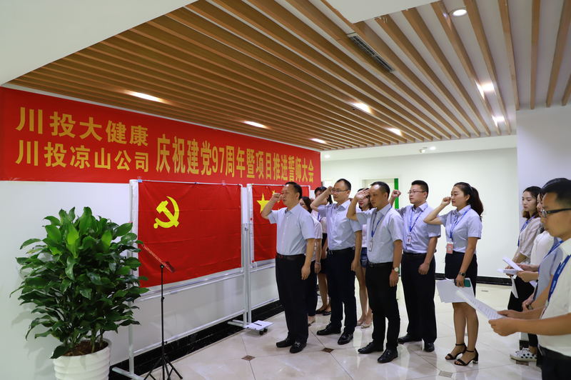 為慶祝中國(guó)共產(chǎn)黨成立97周年,深入貫徹習(xí)近平總書(shū)記四川講話精神,激勵(lì)公司全體黨員職工廉潔高效、躬身奮斗,以項(xiàng)目落實(shí)落地的成果檢驗(yàn)學(xué)習(xí)成效。6月30日上午,川投大健康與川投涼山公司聯(lián)合舉行了慶祝建黨97周年暨項(xiàng)目推進(jìn)誓師大會(huì)。