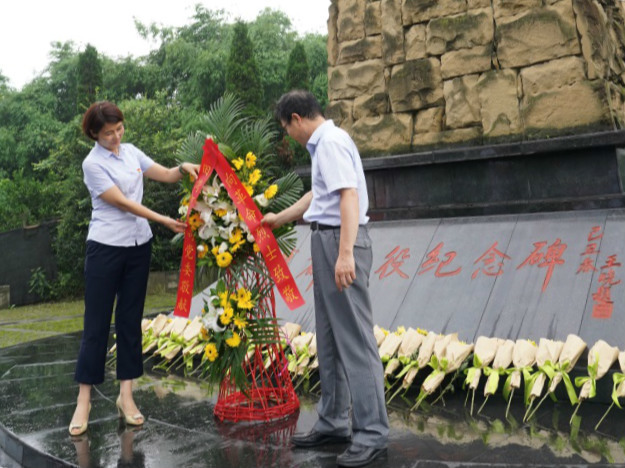 在田灣河公司黨委委員、總經(jīng)理李紅同志的帶領(lǐng)下,田灣河公司近30名黨員、積極分子參觀了成都戰(zhàn)役紀(jì)念館內(nèi)展出的歷史文獻(xiàn)、圖文資料,回顧了人民解放軍征戰(zhàn)西南、決戰(zhàn)川西、解放成都的戰(zhàn)斗歷程。參觀結(jié)束后,大家登上烈士陵園,緬懷革命先烈、堅(jiān)定理想信念。在烈士紀(jì)念碑前,全體黨員和積極分子莊嚴(yán)肅立,田灣河公司黨委委員、總經(jīng)理李紅,黨委委員、副總經(jīng)理唐劍虹代表公司向烈士敬獻(xiàn)花籃。面對(duì)黨旗,田灣河公司黨委副書(shū)記、紀(jì)委書(shū)記楊坤帶領(lǐng)大家重溫入黨誓詞,使全體黨員同志深深的感受到黨員的責(zé)任,使命和榮耀。