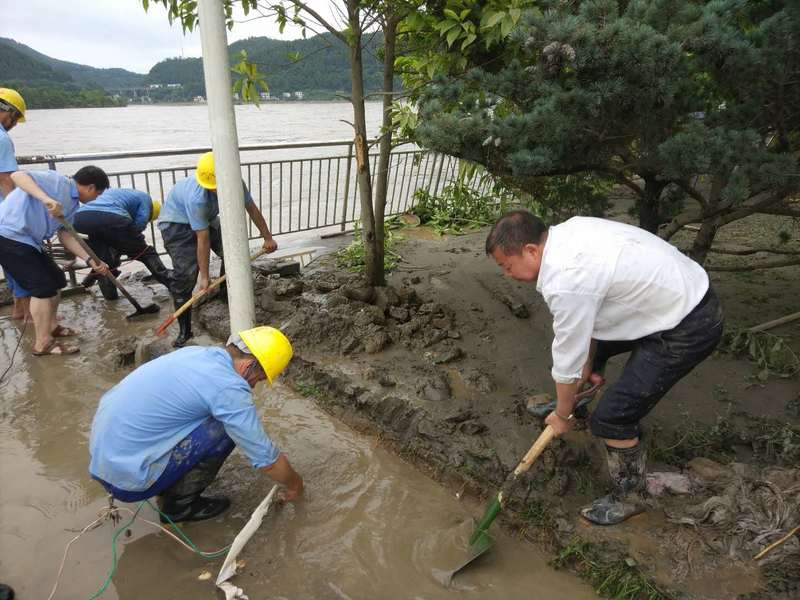 7月12日清晨6時(shí)許,涪江特大洪水水位逐漸褪去,射洪水司迅速對(duì)廣興龍灘取水口進(jìn)行災(zāi)后搶險(xiǎn)和清污工作,首先清理出視頻監(jiān)控室,開(kāi)辟臨時(shí)安全區(qū)。隨后調(diào)配川投水務(wù)所屬射洪水司、宏源氣司員工組成應(yīng)急搶險(xiǎn)隊(duì),對(duì)取水泵房和關(guān)鍵通道口進(jìn)行清污。梁有國(guó)董事長(zhǎng)現(xiàn)場(chǎng)組織兩家公司負(fù)責(zé)人制定搶險(xiǎn)救災(zāi)方案,并挽起褲管,穿上雨靴,拿起鐵鍬,與搶險(xiǎn)隊(duì)員們一道,投入到緊張有序的搶險(xiǎn)清污工作。