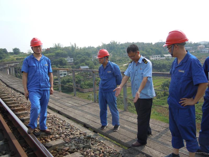 9月3日下午,川南發(fā)電黨委副書記、總經(jīng)理劉勝金帶隊(duì),常務(wù)副總經(jīng)理張洪、總經(jīng)理助理兼生產(chǎn)技術(shù)部主任嚴(yán)天元、職能部門相關(guān)專責(zé)參加,對公司鐵路專用線、半邊山車站、方山車站相關(guān)設(shè)備設(shè)施進(jìn)行了專項(xiàng)檢查,內(nèi)容包括鐵路專用線安全狀況、本年度鐵路專用線整治項(xiàng)目實(shí)施情況等。劉總一行在川鐵(瀘州)公司工電段蒲段長和劉主任陪同下,現(xiàn)場查看了鐵路沿線橋梁、隧道、站場、路基情況以及側(cè)邊坡和排水設(shè)施情況,檢查了車站、鐵路沿線安全設(shè)施、標(biāo)志標(biāo)識等。