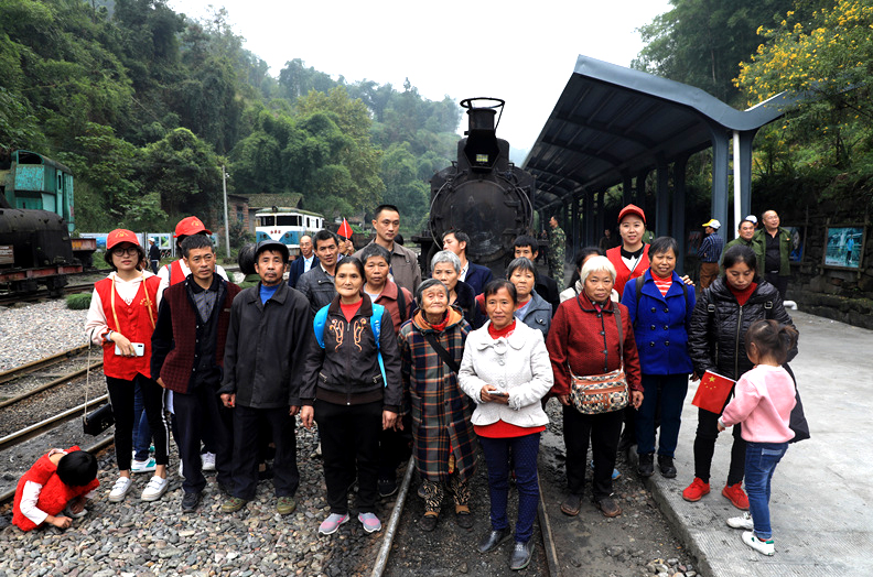 在縣景管委、政府相關(guān)幫扶聯(lián)系人等陪同帶領(lǐng)下,大家乘車到達,在嘉陽影院興致勃勃地觀看了景區(qū)宣傳片,游覽了和諧生態(tài)新礦區(qū),坐上期盼已久的嘉陽小火車,一路聽從專業(yè)講解,欣賞沿途美景,學習快閃舞蹈,觀看蒸汽表演。來到芭蕉溝,大家享用美味特色佳肴,悠閑游覽合影留戀。之后,大家一起登上敞篷拉風電機車,戴上礦工帽,深入黃村井,親身體驗了一把別有洞天的礦工世界!