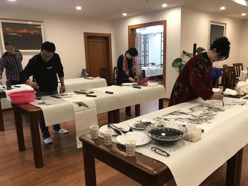 11月10日晚,書畫家們?cè)谔餅澈庸倦娬緺I(yíng)地舉行了以田灣河為主題的書畫筆會(huì)交流活動(dòng)。書畫家們揮毫潑墨,根據(jù)兩天來在田灣河的所見、所想,按照自己的專業(yè)創(chuàng)作了相應(yīng)的繪畫作品,并與公司書畫愛好進(jìn)行了交流和專業(yè)指導(dǎo)。