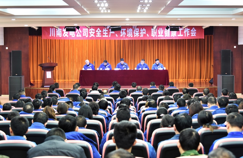2019年1月9日上午,川南發(fā)電2019年安全生產(chǎn)、環(huán)境保護(hù)、職業(yè)健康工作會(huì)在綜合樓五樓會(huì)議室召開。會(huì)議由川南發(fā)電副總經(jīng)理陳嵩主持,公司在家領(lǐng)導(dǎo)、能離開工作崗位的員工及常駐外委單位負(fù)責(zé)人、代表及員工共168人參加會(huì)議。
