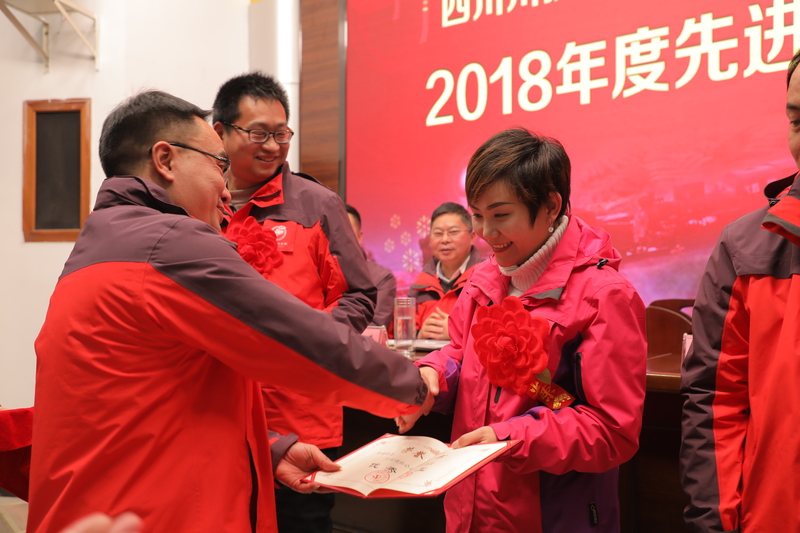 川投峨旅黨委書記、董事長杜勤作了題為《鼓足干勁爭上游 砥礪前行再出發(fā)》的重要講話。最后,川投峨旅總經(jīng)理張多和黨委書記、董事長杜勤分別代表經(jīng)營班子與代表黨總支及董事會向全體職工致以最誠摯的新春祝福,大會還對2018年公司先進(jìn)個人進(jìn)行了頒獎。