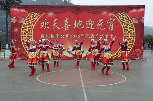 同時,還奉上了一場精彩紛呈的廣場文藝表演,由礦區(qū)健身隊和犍為健身隊聯合表演的歌舞節(jié)目次第登場賞心悅目。既有《鼓動天地》、《蕎麥花》、《洗衣舞》一類的傳統舞蹈,也有《巴拿馬》等節(jié)奏明快的現代舞,歡歌熱舞帶來新一年的吉祥好運??磁_上觀眾不時報以熱烈的掌聲,還有不少觀眾舉起手中的手機按下快門記錄下這美妙的瞬間。