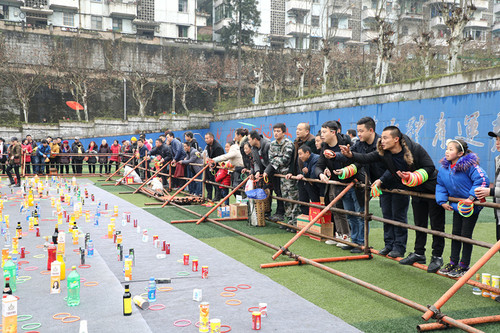 19日上午,猜謎語、實物套圈在礦區(qū)官斗山球場同時進行。兩百余條謎面涵蓋了喜聞樂見的字謎、成語典故、妙趣橫生的俗語、專業(yè)名詞、地方民俗等供大家競猜,既具娛樂性,又具知識性,答對了會獲得一份獎品,吸引了不少愛好者前來參與,或是大人帶著孩子、又或是三五老友相伴,一同感受這濃濃的中華傳統文化。