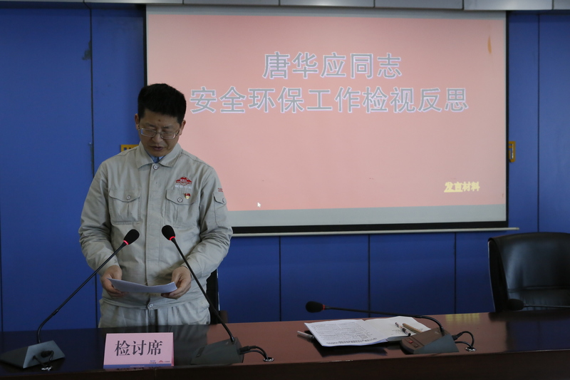 按照會(huì)議議程安排,唐華應(yīng)率先從抓好自身安全環(huán)保思想態(tài)度言行的認(rèn)識(shí)、自身在落實(shí)安全環(huán)保和崗位整潔與職業(yè)健康方面責(zé)任的不足和差距、對(duì)照標(biāo)準(zhǔn)嚴(yán)格整改問(wèn)題和不足以及懇請(qǐng)監(jiān)督務(wù)求取得整改實(shí)效四個(gè)方面進(jìn)行了深刻反思檢討發(fā)言,并接受了與會(huì)人員的質(zhì)詢批評(píng),唐華應(yīng)表示接受大家的批評(píng),并宣誓立即著手全面徹底整改并真誠(chéng)接受全員監(jiān)督整改。公司安環(huán)職健委副主任委員、委員也先后逐一作了反思檢討發(fā)言,并在發(fā)言結(jié)束后,接受公司安環(huán)職健委主任、副主任的質(zhì)詢點(diǎn)評(píng),指出思想認(rèn)識(shí)是否深刻、查找問(wèn)題是否準(zhǔn)確、整改措施是否到位等存在的問(wèn)題。