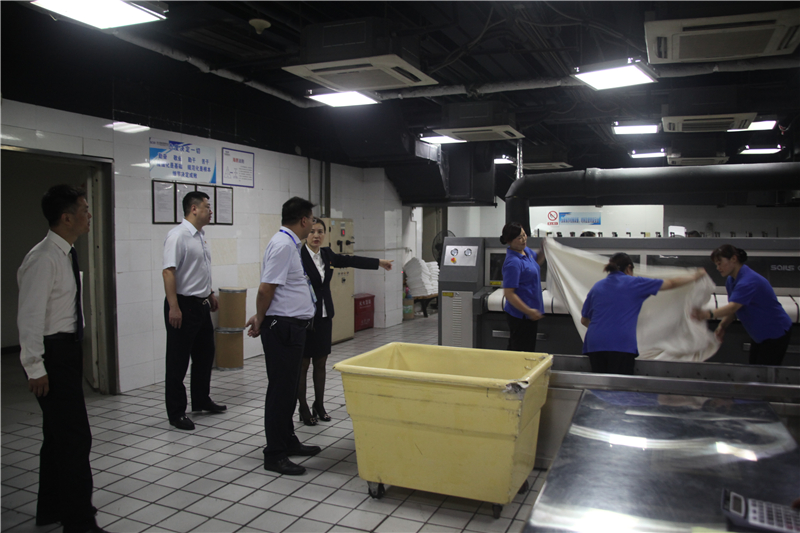 在川網(wǎng)國際酒店,調(diào)研組聽取了酒店近期銷售情況介紹后,王旭濤對近期酒店取得的業(yè)績表示了肯定,鼓勵所有營銷人員要繼續(xù)努力,團結(jié)一致將前期拉下的經(jīng)營任務(wù)趕回來。隨后前往房務(wù)中心及洗衣房,對客房工作進行調(diào)研,王旭濤指出,洗衣房夏季溫度較高,要為員工準(zhǔn)備好解暑降溫品,防止中暑。